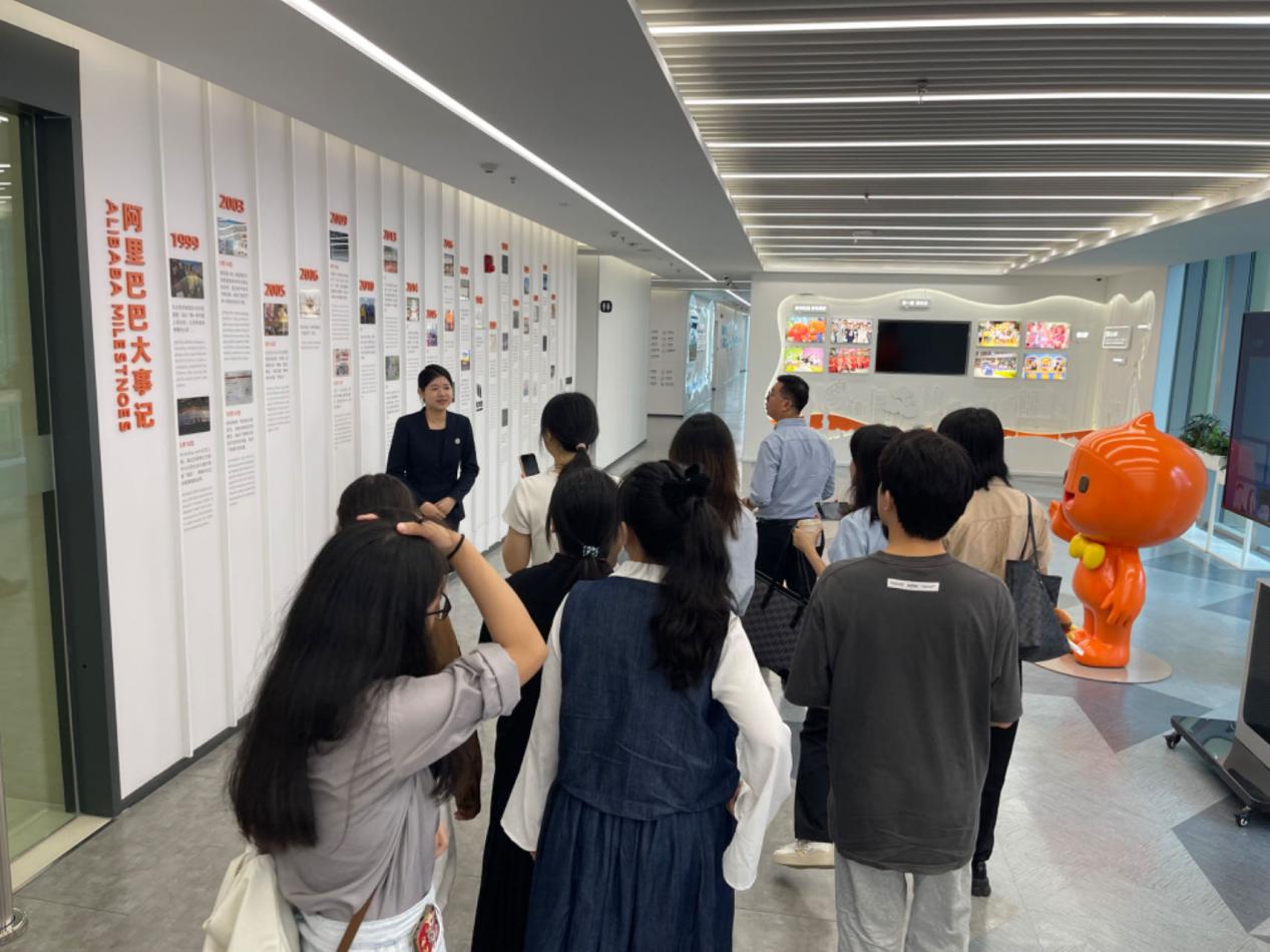 阿里巴巴的企业文化同样让同学们印象深刻。通过此次参观,我们看到了企业如何在管理中融入文化建设,从而提升员工的归属感和工作积极性。来自大三ACCA班级的刘嘉欣同学特别提到,阿里巴巴的企业文化和价值观在实际运营中得到了全面贯彻,这种客户第一、员工第二、股东第三”的理念增强了员工的凝聚力和创造力。大四的会计学专业的学生陈嘉欣则对阿里巴巴办公空间的设计和文化氛围表示赞赏,她感受到阿里巴巴对于创新的无尽追求,以及这种文化对企业长远发展的支撑作用。