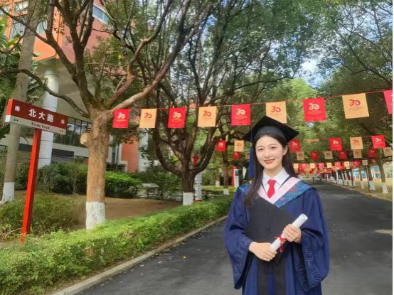 校友们漫步校园,沿学院楼、校史馆、图书馆等标志性场馆重走青春路。在“我与母校合个影”点位,身着学士服的身影与母校风景一同定格,笑容灿烂如昔。