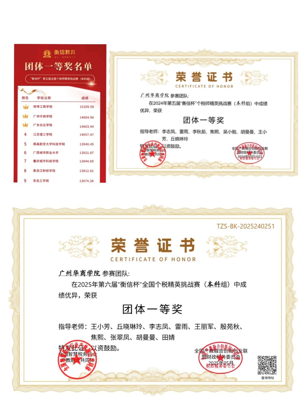 图20 学生参加全国“衡信杯”个税师精英挑战赛(本科组)竞赛获团体一等奖