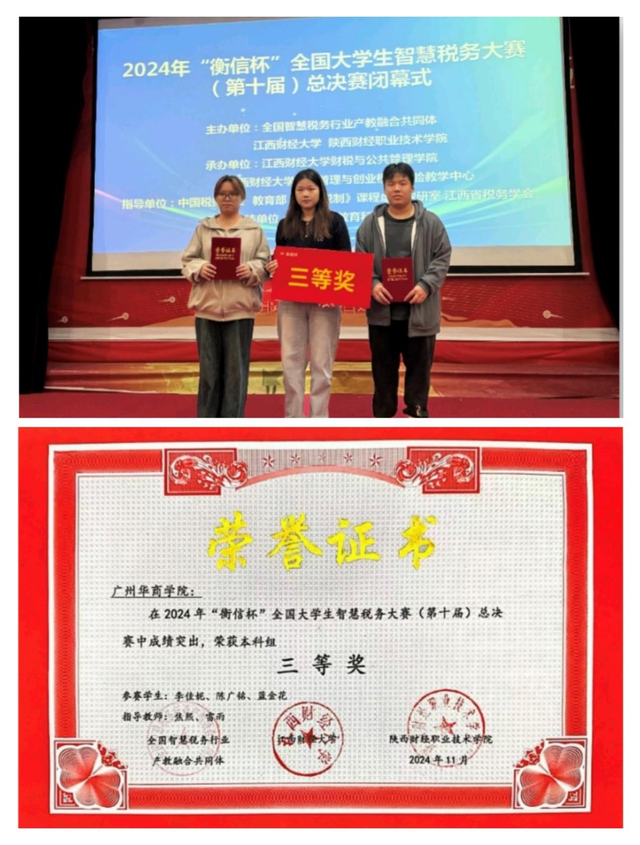 图19 学生参加“衡信杯”大学生智慧税务大赛总决赛获三等奖