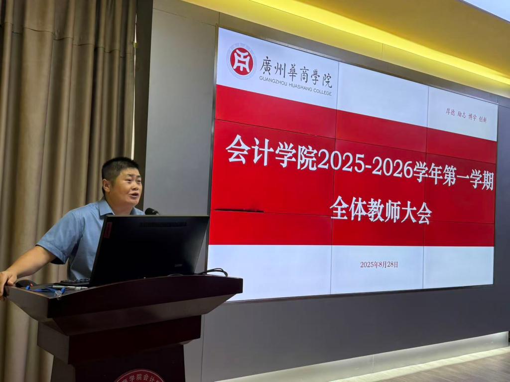 院长助理陈平介绍了上学期团队工作:统筹 13 名教师赴澳访学、20 名赴新研修,承办 4 场教学创新研讨会,组织学生参与金蝶数智化训练营及企业研学,还推进教师报销初审与 “师徒制” 规范化。她指出本学期将重点落实 “师徒制”、“导师制”,加强学院经费管理,保障工作有序推进。