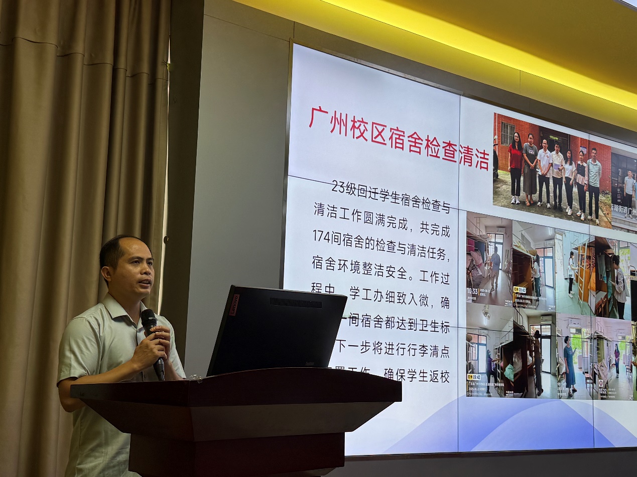陈少鸿副院长从假期学生宿舍检查清洁、学生暑期社会实践、学生就业促进及合格评估准备工作进行了全面汇报。新学期已实施社区辅导员驻楼办公制度、落实班主任选聘考核与津贴激励机制,完成了两轮新生电话回访并制定迎新方案。他指出学院下一步将从“以评促建、夯实基础、突出实效、规范管理”四个维度持续发力,全面提升伟德国际水平。