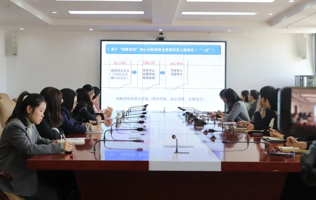 张执国院长展示了财经学院基于“一点、两线、三面”的全维思政育人探索与实践理念。通过整体规划人才培养体系,落实思政育人,探索战略思政,形成全维思政育人体系,促进学生综合素质养成,有效支撑学生成才成长,并针对伟德国际victor1946的育人理念进行了交流,互补长短。