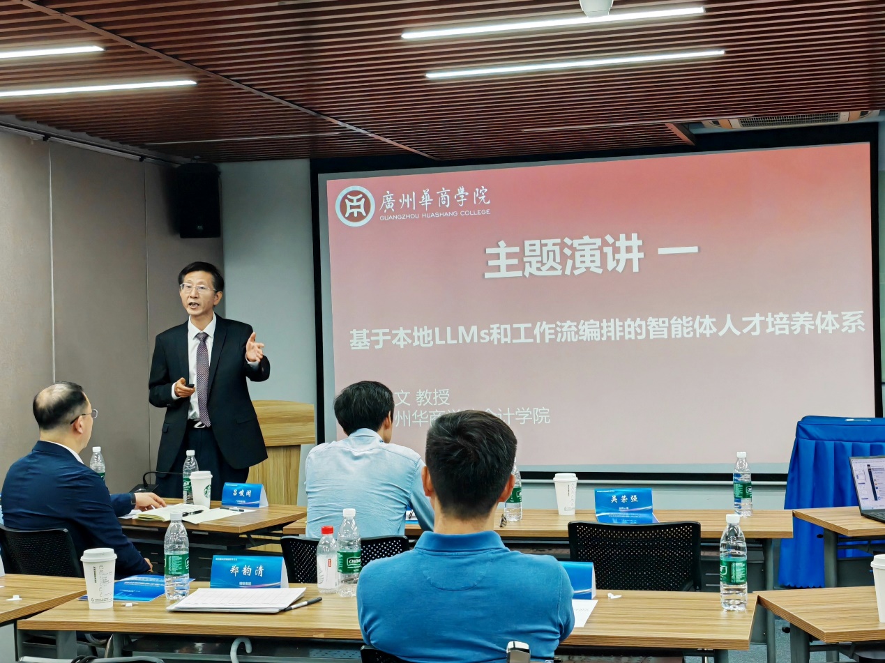 在主题演讲环节,bv伟德国际1946朱文教授,以“本地LLMs与工作流编排的智能体人才培养体系”为题,深度解析了数智教育的“华商方案”,首次公开展示学院自主研发的“神华AI嵌入平台”。该平台以本地大模型为核心,融合多模态数据处理、知识库构建和智能体开发,搭建了跨学科、全流程、可扩展的人才培养新业态,结合跨学科项目如“企业健康评价”(融合会计学、金融学与AI技术)和“乡村休闲榜单”(整合经济学、统计学与LLMs),实现了从数据治理到智能决策的全链条协作。朱教授强调,“无AI不华商”是学校在AI时代背景下的愿景,通过“工作流编排+本地化模型”双轮驱动,为跨学科融合实践提供了新范式,推动“人人会用大模型、人人可享高算力、人人拥有知识库、人人能建智能体”在华商校园全面落地。