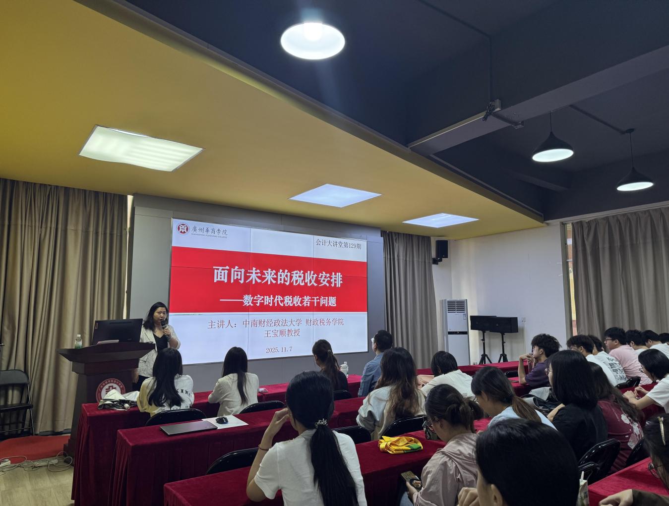 2025年11月7日,中南财经政法大学财政税务学院王宝顺教授应邀做客华商会计大讲堂,以《面向未来的税收安排——数字时代税收若干问题》为题,为bv伟德国际1946师生带来一场深度解析数字经济与税收变革的学术盛宴。本次讲座由会议由bv伟德国际1946院长助理陈平副教授主持。