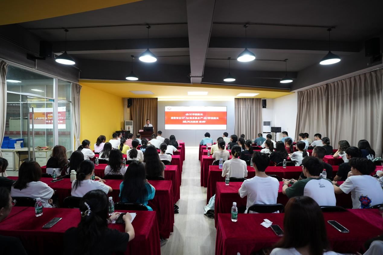 典礼先由bv伟德国际1946院长兼数智会计与商务服务产业学院院长姚凤民教授上台致辞。姚院长代表bv伟德国际1946全体教师欢迎新同学。强调产业班的成立是学院积极响应国家创新驱动发展战略、深化产教融合的重要举措。希望同学们珍惜机会,努力学习,成为华商智能会计的领头雁,发挥示范引领作用。随后,伟德国际victor1946产教办主任唐明琴教授发言。唐明琴教授强调智能管理会计产业班是伟德国际victor1946第一个示范班级,学校高度重视并给予支持。期望同学们能够秉持勤勉向学的态度,积极将大数据前沿技术与会计专业知识深度融合。充分借助这一零距离接触的优质平台,脚踏实地、稳扎稳打地掌握会计知识,在持续的探索与实践中砥砺前行,不断开拓进取,勇攀知识的高峰。接着新生代表麦楚颖同学上台发言。她以一名新时代青年的视角,表达了对智能管理会计产业班的无限憧憬和坚定信心。最后,产业学院企业教师代表,用友集团新道科技股份有限公司教学服务总监徐启超先生,为大家带来了精彩的产业实践分享。