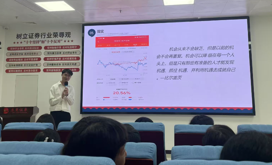 活动中,东莞证券资深投资顾问钟芙瑾带来了一场生动的金融实务讲座。内容聚焦当前证券市场热点,结合投资理财、财富管理等实际案例,深入剖析了行业趋势、风险管理及投资策略设计。