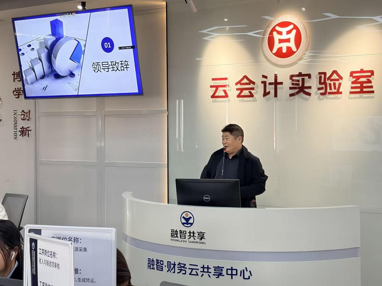 在学员分享环节,22本审计学2班李奕菲作为优秀学生代表,系统回顾了四周实训内容。她从第一周的基础操作入门,到后续的社保审核、个税计算、工资归档及综合实训,逐步深入财务云共享平台的全流程操作。李奕菲特别分享了实训中遇到的问题与解决心得,如进项理票时对餐饮费、交通费的科目区分,以及凭证处理中的注意事项。她表示,这段经历让她更直观地理解理论如何落地,也增强了应对实际账务处理的信心。