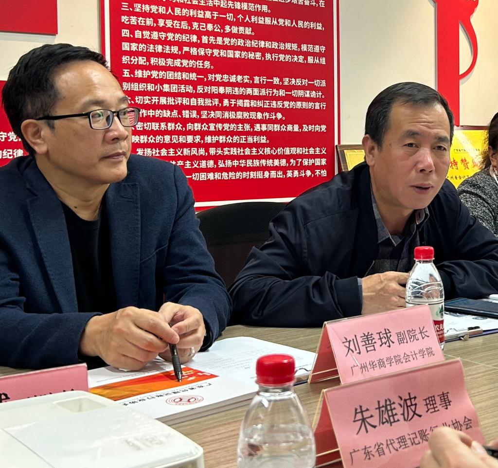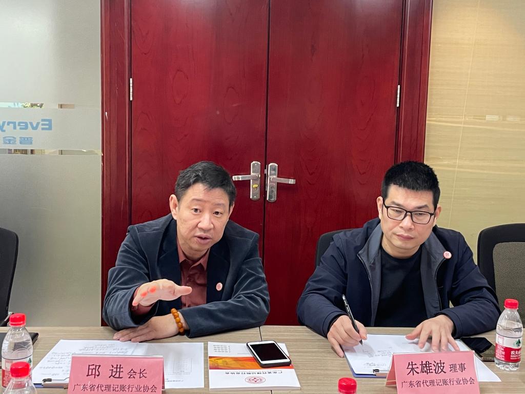 座谈会伊始,广东省代理记账协会会长邱进对姚凤民院长一行访问协会表示热烈欢迎,邱进会长及姚凤民院长分别介绍了双方出席座谈会的代表。随后,协会秘书长张凯华从协会性质、组织架构、政府助手、会员发展、会员服务、行业自律、使命与愿景等方面详细介绍了协会的基本情况。