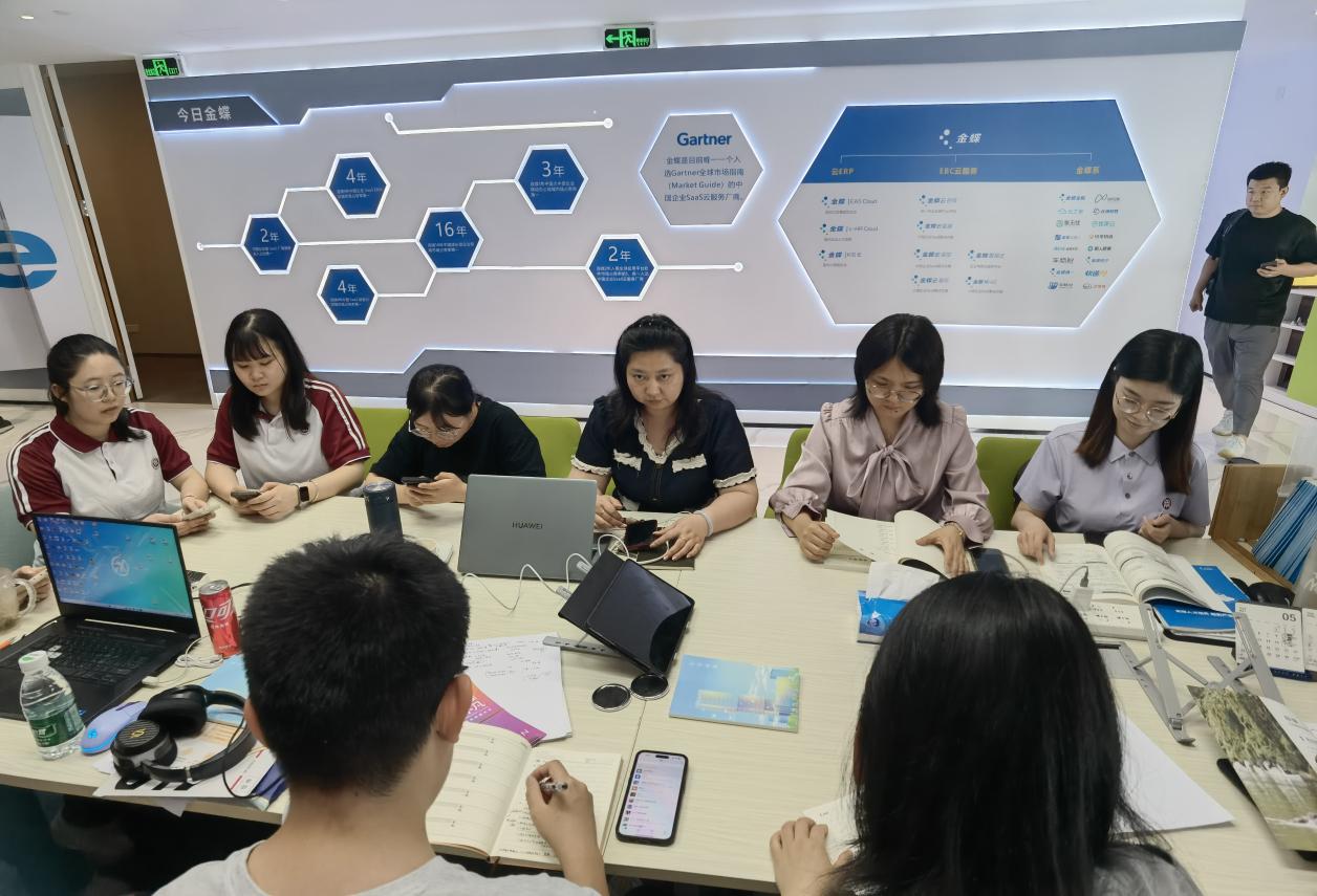 在此次走访过程中,金蝶的领导魏佳丹先生带领了华商一众教师和学生代表参观了公司的办公场所、业务部门和文化展示区,了解公司的发展历程、企业文化和业务范围。