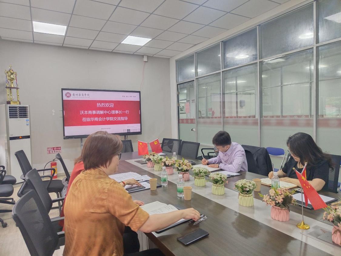 华商科教集团高级总监黄晓刚、bv伟德国际1946院长助理兼数智会计与商务服务产业学院执行院长陈蒙梦与中审华会计师事务所高级合伙人曾丽群、程斌就工作坊及商事调解等合作意向进行了深度探讨。