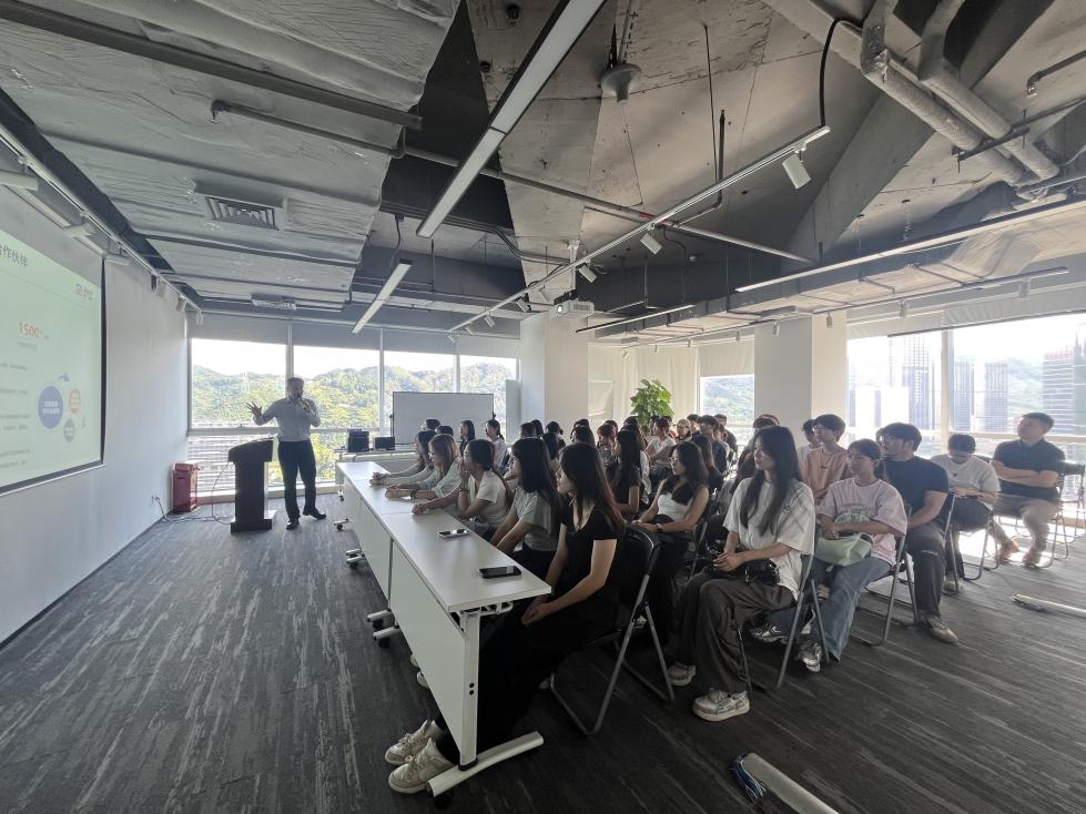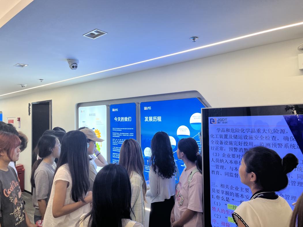 首先,师生在建广数科工作人员的带领下参观了企业发展回廊,通过展示图文的展示与讲解,学生了解了企业发展历程、核心业务及产业数字化领域的实践成果,也对数字化转型路径建立直观认知,为后续交流做好铺垫。