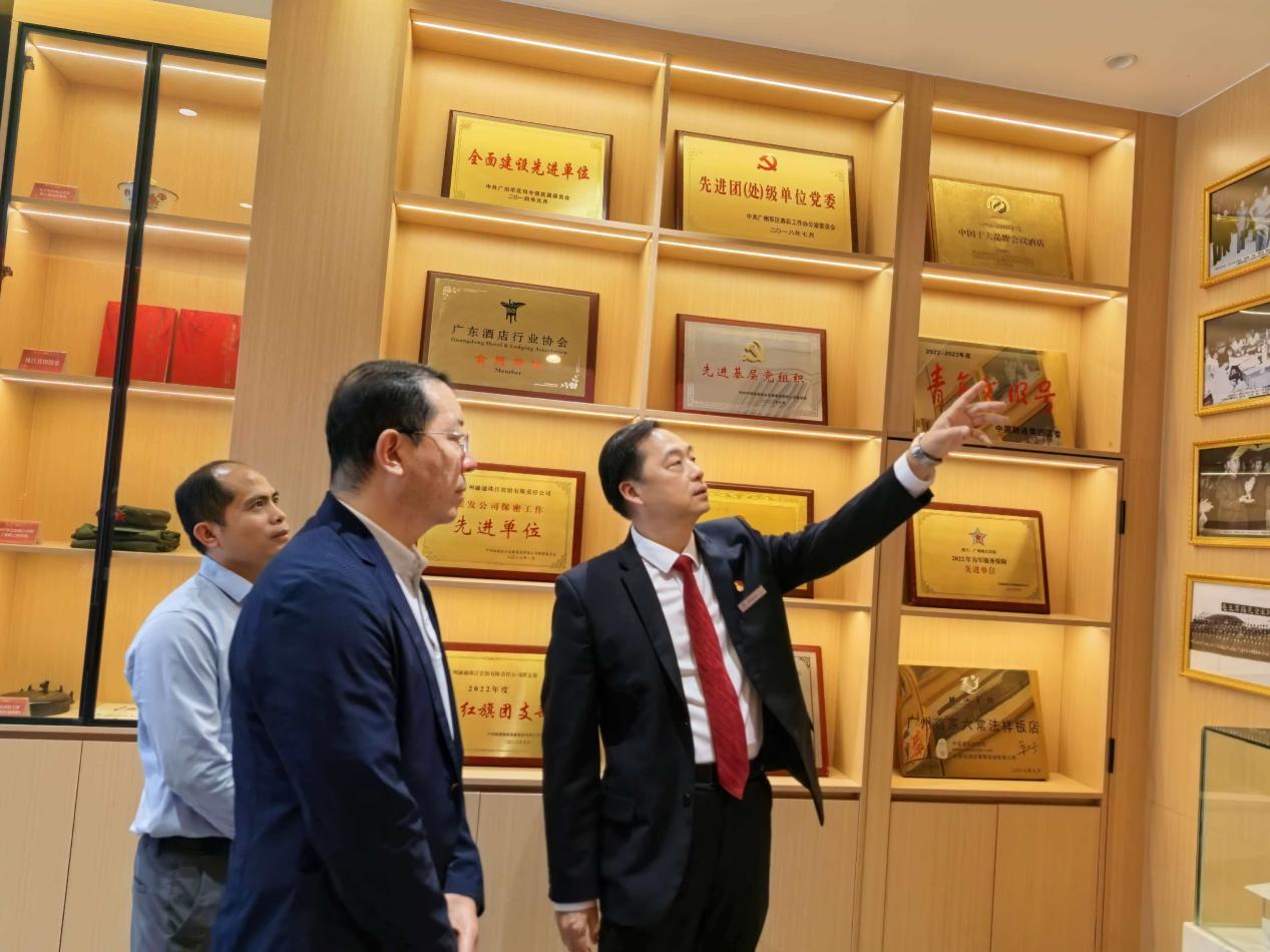 在bv伟德国际1946党委副书记陈少鸿、学工办主任杨烨瀚,管理学院团委书记王子龙等陪同下,吕峻闽副书记一行首先参观了珠江宾馆的红色文化阵地,深入了解珠江宾馆在传承红色基因、打造党建品牌方面的经验做法。宾馆浓厚的红色氛围、规范的党建阵地以及将党建工作融入经营管理的创新实践,给来访人员留下了深刻印象。