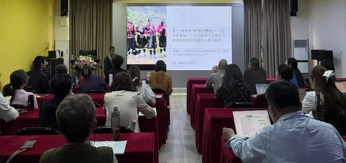 杨森平教授长期致力于乡村振兴、农村金融、财税政策等领域的研究,尤其对广东民族地区经济社会发展有着深入洞察。讲座中,杨教授从会计学视角切入,系统剖析了广东民族地区县域平台在“三资”核算中面临的实际困境,深入探讨了如何通过协同机制实现从“三资核算”到“生态增值”的跨越。杨教授指出,当前民族地区县域平台在资源估值、资产确权、资金整合等方面存在诸多难点,传统会计框架难以充分反映生态价值与协同效益。杨教授结合在广东多个民族县,如连南、乳源等地的调研案例,提出了构建以生态价值为核心的协同估值体系、优化县域平台治理结构、探索“资源—资产—资本”转化路径等创新思路,为在场师生带来了一场理论与实践深度融合的学术盛宴。